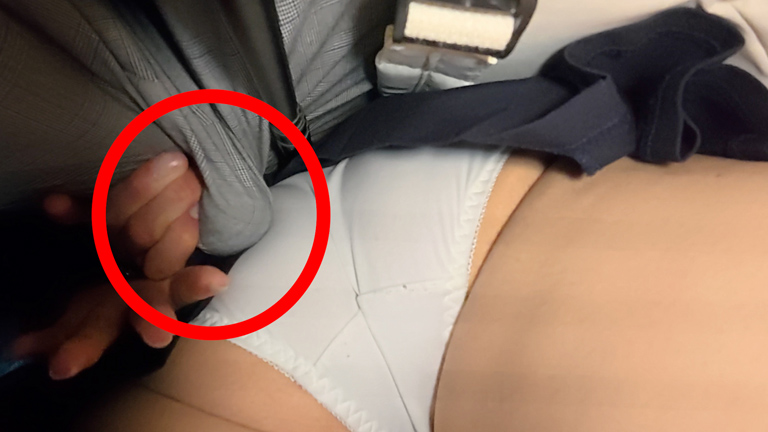 顔撮りは無しですが夏服のレベル高そうなモデルさん、電車内で白パンを触りまくり。