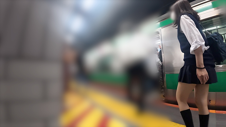 降車後のシーンでもスカートをめくってパンツ丸見えに。