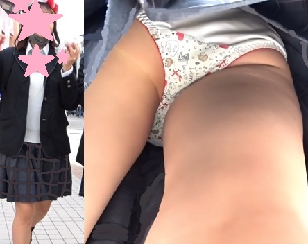 97.かわいい制服ちゃんのプリント柄白サテンパンツ